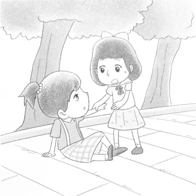 动作:小雨摔倒了,婷婷伸手搀扶她